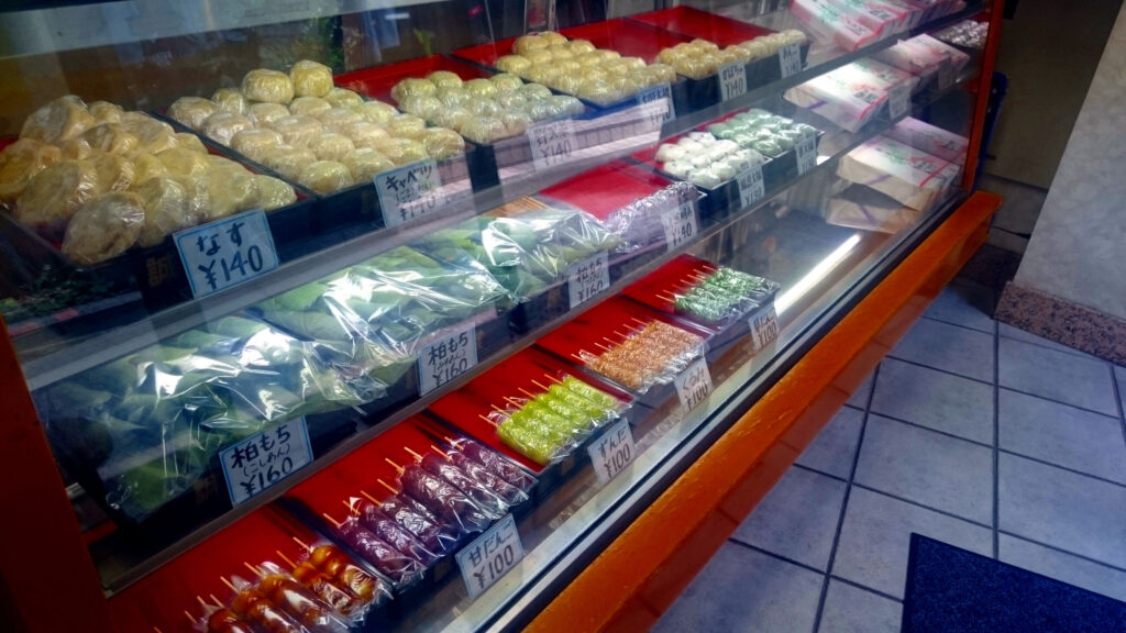 Seishindo (誠心堂) has a 30 year history of making delicious oyaki and is quite the hidden gem with its location being in a narrow alleyway. Oyaki is a specialty of Nagano prefecture. Oyaki are little buns filled with mainly vegetables and some with fillings such as sweet bean paste etc. The oyaki at Seishindo are some of the best. They don't just have oyaki, but also dango (skewered glutinous rice cake balls) and other kinds of sweets.