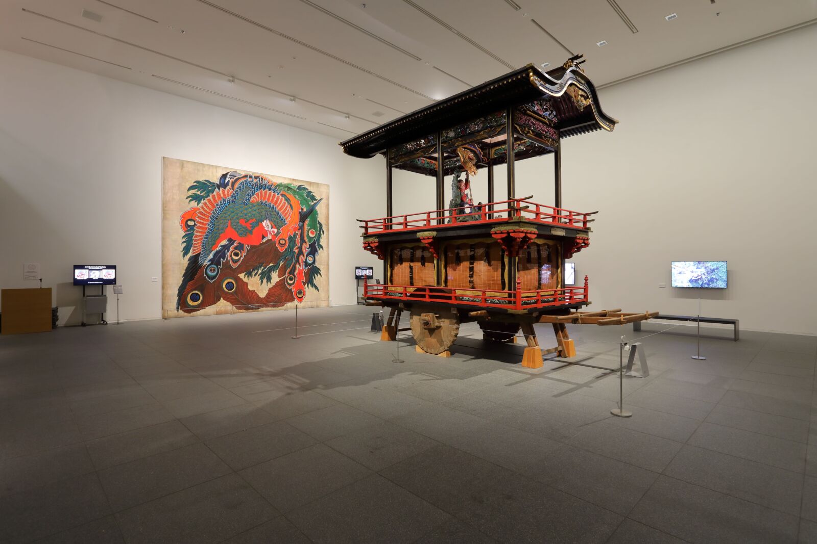 Section one of the gallery features Hokusai’s pieces which were inspired by or dedicated to Obuse, a town famous for its chestnut production and is the location of the Hokusai Museum. In his mid-80s, Hokusai came to Obuse and painted several masterpieces including Masculine Waves and Feminine Waves for the ceiling of the Kanmachi Festival float, which is present in its entirety in the first floor exhibit hall! This floor also features a full-size high-definition reproduction of the ceiling painting, Phoenix, featured in Obuse’s Gansho-in temple.