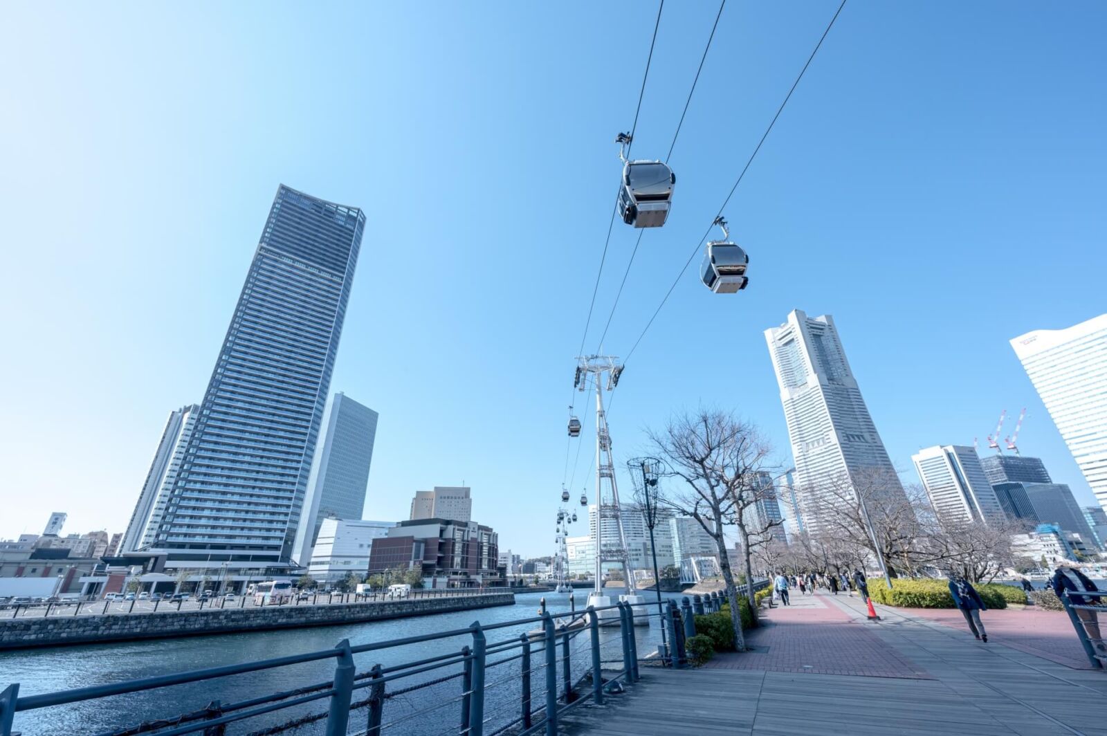 สำหรับจุดหมายปลายทางแรกของเรา เราจะขึ้นกระเช้าลอยฟ้า โยโกฮาม่า Air Cabin กระเช้าลอยฟ้าที่สร้างสรรค์แห่งนี้จะทำให้คุณประทับใจกับเมืองนี้ตั้งแต่ครั้งแรก! เราจะนั่งกระเช้าลอยฟ้าข้ามเมืองและท่าเรือ ซึ่งคุณจะได้เพลิดเพลินไปกับทัศนียภาพอันกว้างไกลของท้องทะเลและเมือง รวมถึงชมสถานที่สำคัญที่มีชื่อเสียงและเป็นสัญลักษณ์มากมายของเมือง การนั่งกระเช้าลอยฟ้าใช้เวลาประมาณ 5 นาที