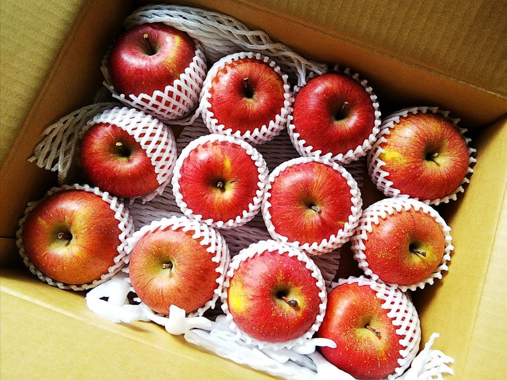 It is said that San-Fuji apples are the most popular variety in Japan and possibly, the entire world. A hybrid variety originating in Japan, these are very large apples with dense flesh and a crisp texture. Highly fragrant their popularity stems from a balanced taste of sweet and sour.