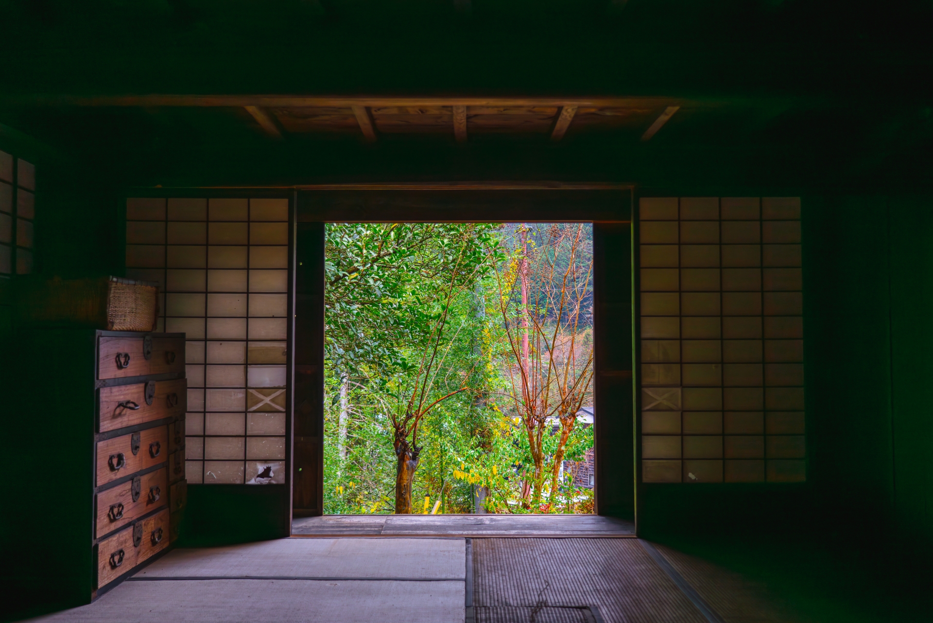 Getting closer to Tsumago, you will run into the Tateba Chaya (tea house), which is thought to have been built before the 1600s and served as a resting place for travelers. Here, you can take a break and enjoy a cup of green tea offered by the maintainer. If you walk the trail around May, the weeping cherry blossom in front of the tea house will be blooming with beautiful pink flowers.