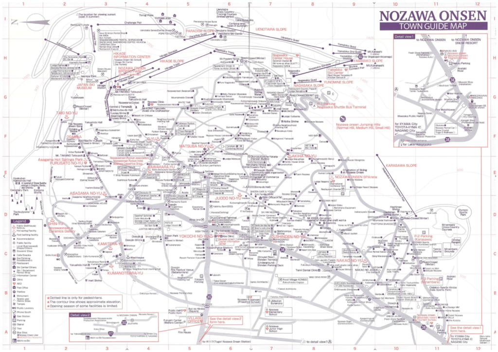The resort of Nozawa Onsen is approximately 50KM (<1 hour drive) to the northeast of Nagano City and within easy reach of Tokyo - 260KM (<4 hours drive) – or around 2 hours using the Hokuriku Shinkansen. Nozawa Onsen Ski Resort is well-established as a favorite destination for international visitors given its excellent terrain, relatively compact size, and lively village. On this page you will find the following information: