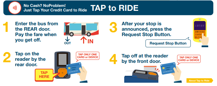 Today, though, both contactless payment and IC cards are accepted on several routes. Particularly the Loop Bus and the Sightseeing Bus.
