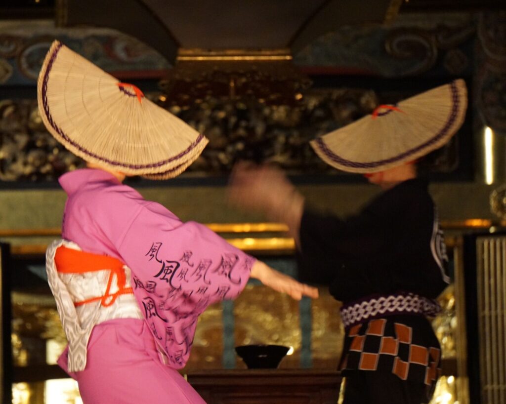 There are three main dance styles: the "Harvest Festival Dance," "Male Dance," and "Female Dance." The Owara Kaze no Bon attracts vast crowds eager to witness the mesmerizing "Machi-nagashi" street processions and "Wa-Odori" circle dances, with each of Yatsuo's 11 historic districts showcasing its own unique dance and costume variations.