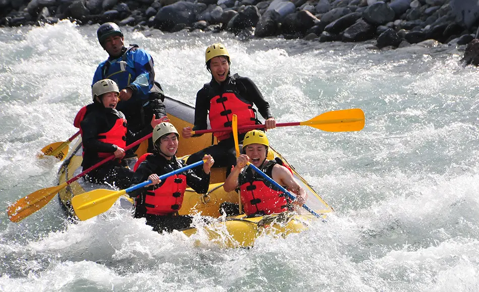 River activities can be enjoyed in the Saigawa river and Himekawa river in Hakuba. Lion Adventures offers river rafting, glamping, BBQ, and shower (waterfall) walking—everything you could want from a day spent by the river! The Saigawa river is gentle and wide, so rafting there is recommended for inexperienced and younger groups, while the faster-flowing Himekawa river is recommended for more extreme rafting. The rafting tours are half-day experiences, about 2.5 hours long in total, available in the AM or PM.
