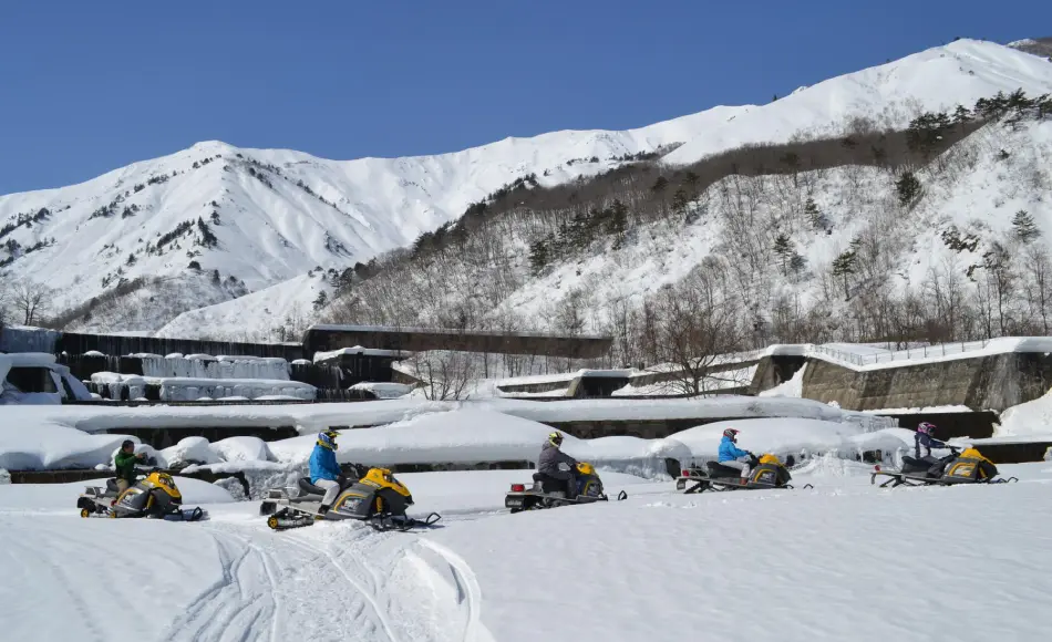 Enjoy riding through the hills of the Japanese Alps with the thrilling experience of snowmobiling. The snowmobile experience offers single and tandem ride bikes. Your exhilarating ride will last for 60 minutes, including 10 minutes of instruction at the beginning. Children of 6 years and older are welcome to join a tandem ride with an adult, and guests 16 years and older can ride alone.