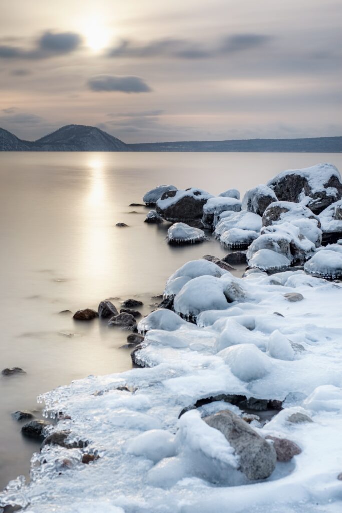 Lake Shikotsu is known for its exceptional water clarity and great depth. It is one of Japan’s clearest lakes and rarely freezes, even in winter.
