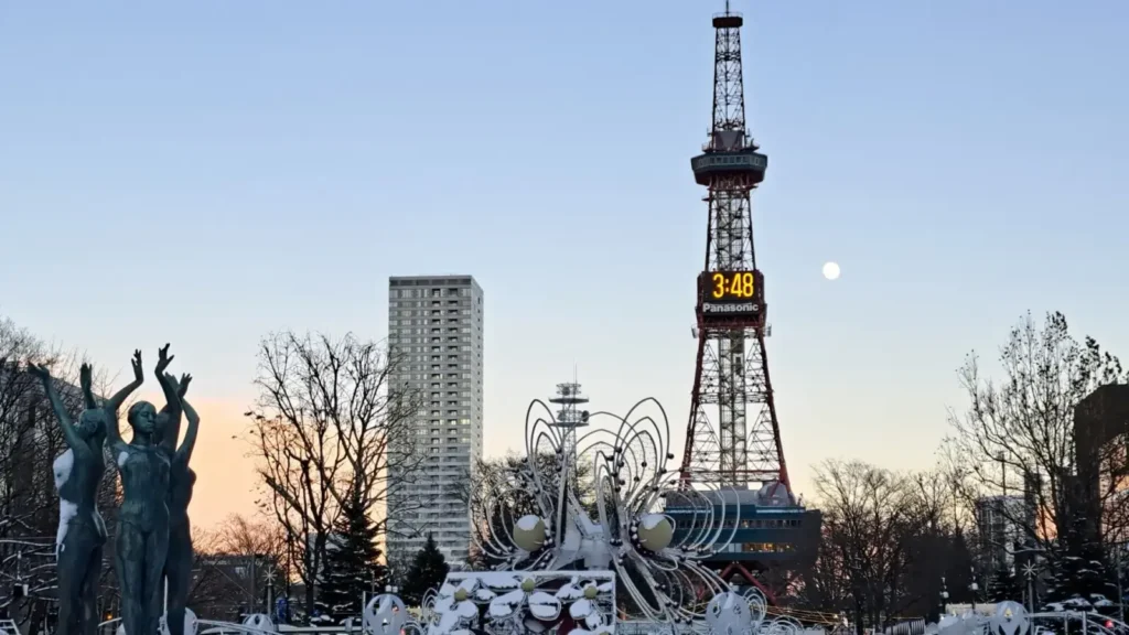 It stands 147.2 meters with its observation deck located at 90.38 meters above the ground. Offers panoramic views of the city, including Odori Park, Mt. Moiwa, and on clear days, Mt. Teine. Night views are particularly stunning, with city lights creating a beautiful contrast.