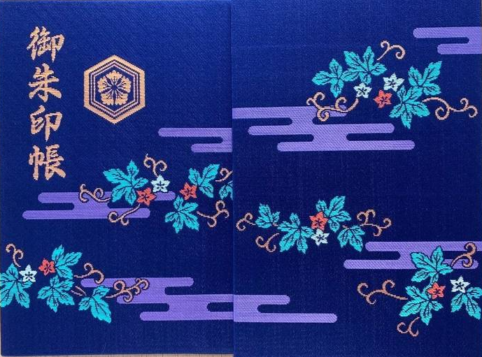 There are sometimes seasonal-themed books on offer. The one shown here, which is available all year round, bears the emblem of the Hakusan Jinja sect. The words written on the left say goshuincho, literally "red stamp book."