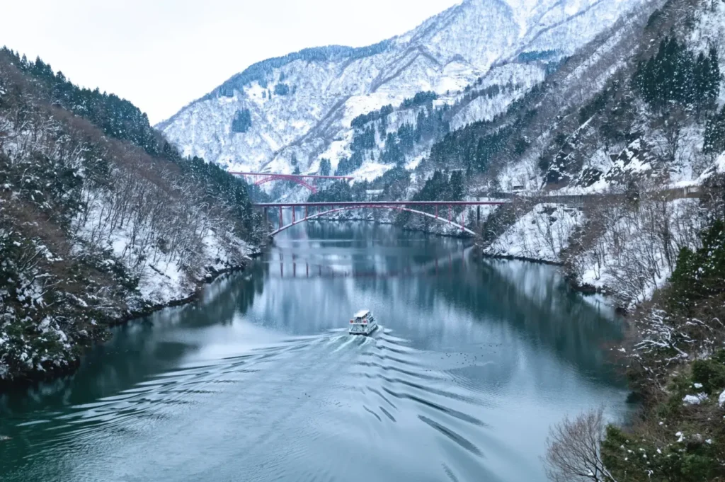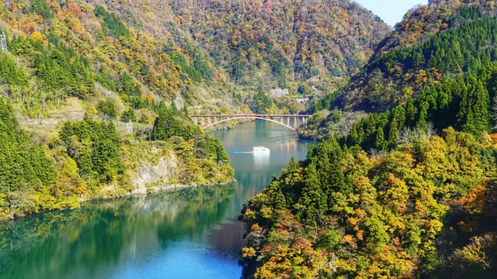 In an effort to revitalize the area and make use of the boats already brought here for logging, a scenic cruise was started for people to enjoy all the seasons of the region. The former hot spring that was submerged by the lake was reconstructed as one hotel, the Omaki Onsen Hotel, that is only accessible by boat. The boat trip and a stay at the secluded hot spring resort is a relaxing and restorative journey that can't be missed!