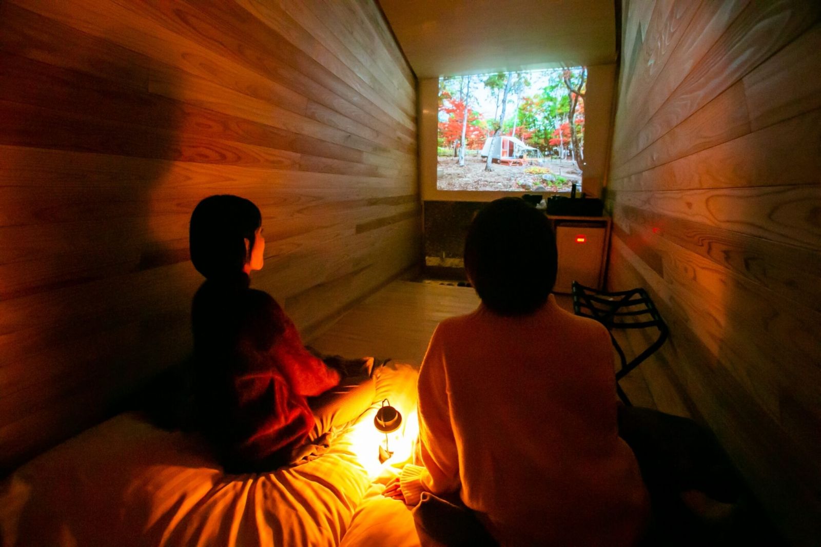 At night, sit on the attached deck to enjoy a camp fire and gaze at the stars above, indulge in an evening drink at a private bar or enjoy a lantern-lighting experience nearby your accommodation. For guests who prefer to simply relax by themselves, the unit is equipped with a projector, internet and streaming services allowing you to relax in privacy and comfort.