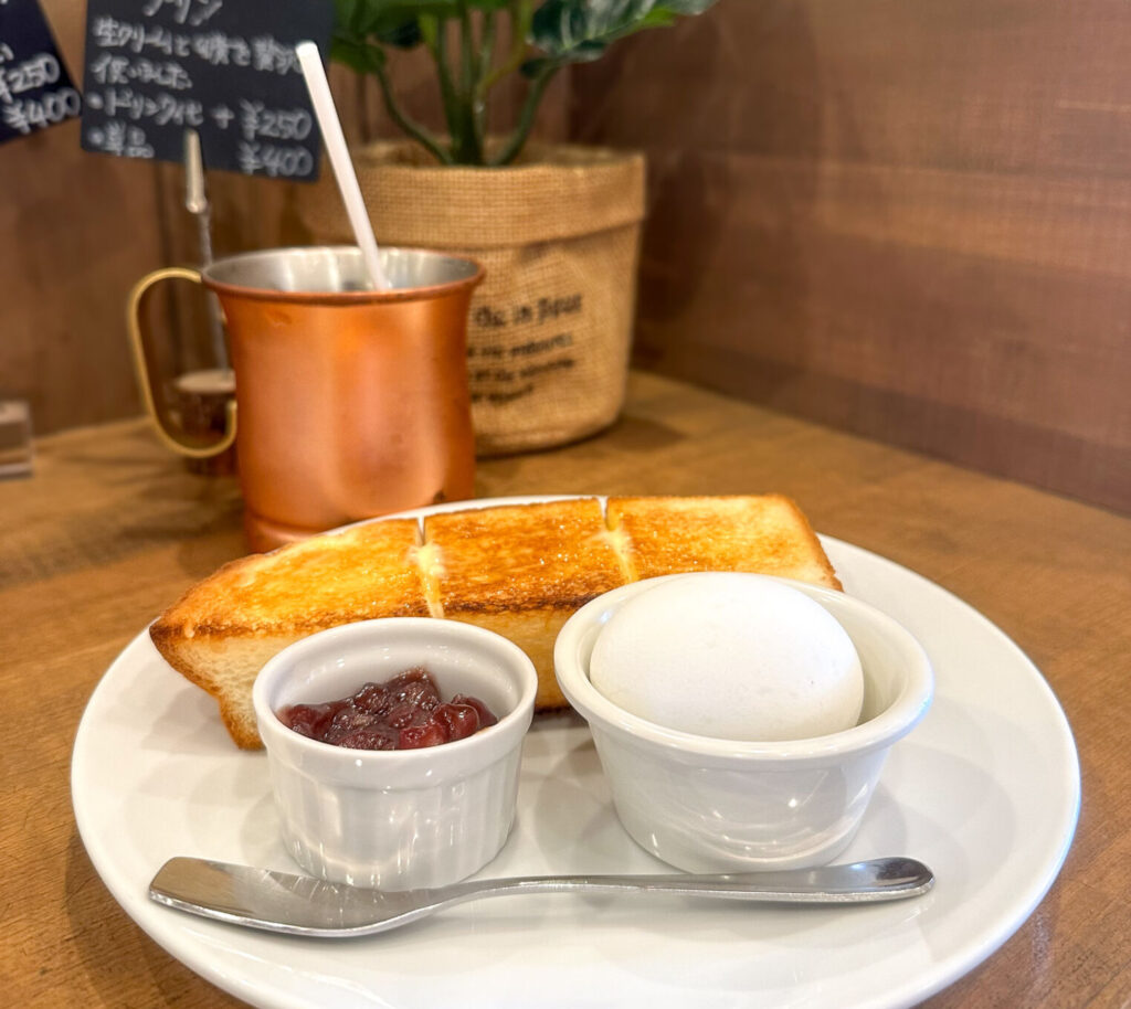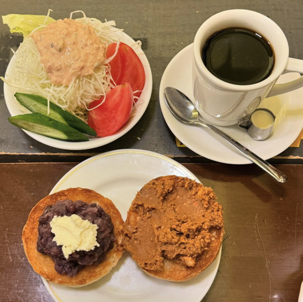 Choose between toast or a fluffy Kaiser roll as your base. For a small extra charge, you can upgrade with Ogura-an(sweet red bean paste), whipped cream, or their unique Kinako Butter—a rich, nutty roasted soybean spread that pairs beautifully with coffee.