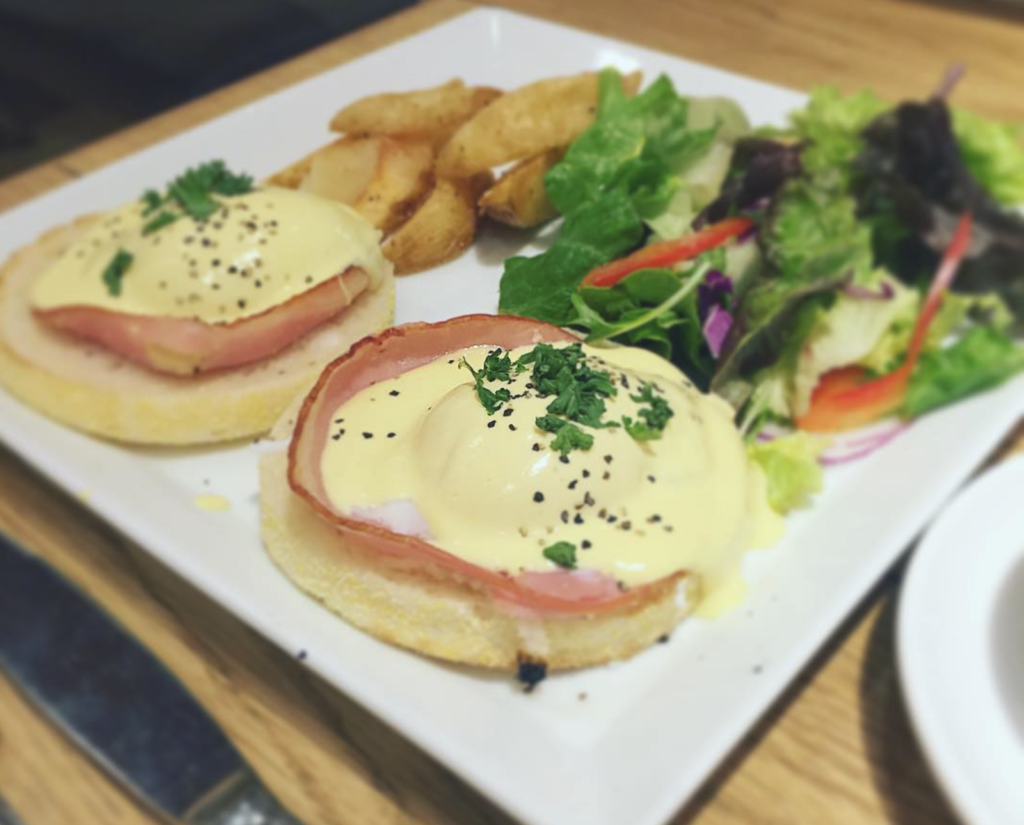 MACCARONI offers a variety of drinks and light meals throughout the day, but its breakfast are especially popular for both locals and commuters. The standout morning item is the Nagoya Cochin Egg Benedict (990 yen), made with locally sourced Cochin eggs (a Nagoya specialty known for its rich flavor and bright yolk).