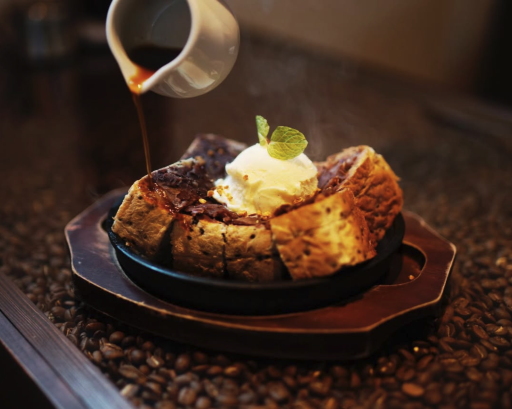 Their original Ogura Toast is a thick, golden-brown sandwich filled with sweet adzuki bean paste—just as it was when the dish was first invented. The café also serves its signature Mild Blend coffee, roasted in-house from carefully selected green beans. The result is a smooth, lightly aromatic cup that pairs perfectly with the toast.