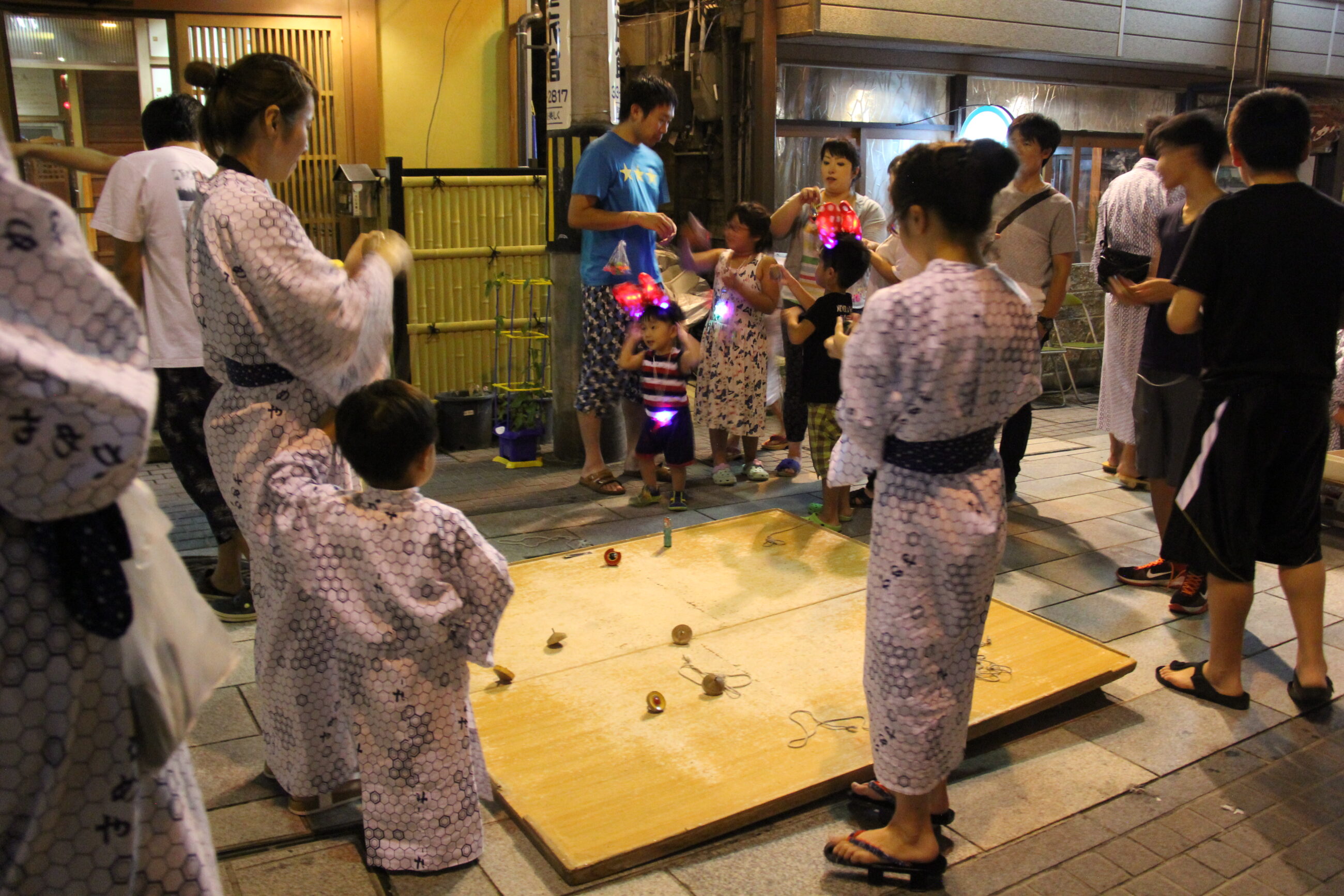 The dance of Bon-odori is danced, a karaoke competition is sung, an open-air tea ceremony is held, and lanterns line the long street. There are small stalls with all sorts of games to be played.