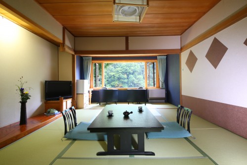 Rooms are equally comfortable with tradational 'tatami' (woven straw) mats, futon beds, and private toilet. Large windows also afford soothing views of the surrounding landscape.