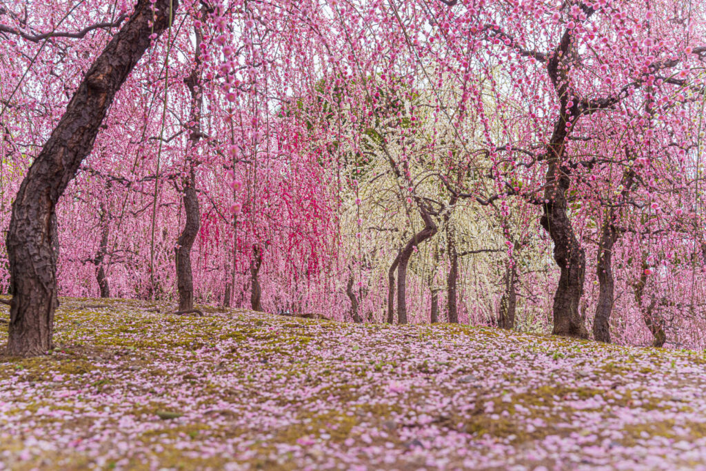 Two of the best places to see plum blossoms are Kitano Tenmangū, famous for its Baikasai festival and outdoor tea ceremonies, and Jonan-gū Shrine, where early-blooming varieties appear in elegant garden settings. Plum blossom viewing is calm and uncrowded, making it ideal for travelers who prefer a quieter, more reflective experience.