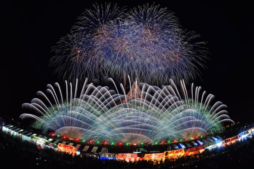 Every year on November 23, Nagano City comes alive with the dazzling Ebisu-ko Fireworks Festival (えびす講煙火大会), one of Japan’s most spectacular autumn celebrations. As night falls, more than 15,000 fireworks burst over the city, painting the crisp November sky in radiant colors. The display is choreographed to music and enhanced by seasonal festivities, with a modern twist in the form of an opening drone show that sets the stage for an unforgettable evening.