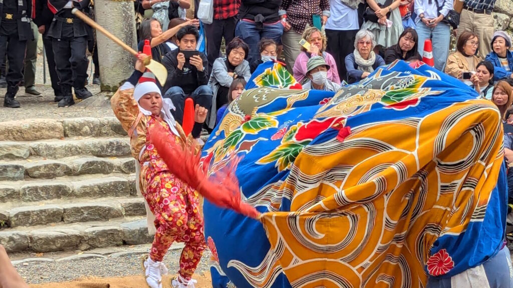 October is also harvest season in the region. Persimmons hang from farmhouse eaves, chestnuts and mountain vegetables appear in local dishes, and freshly brewed doburoku sake is enjoyed at the festival. Seasonal treats such as gohei mochi and warm snacks sold in the village taste even better in the crisp autumn air.