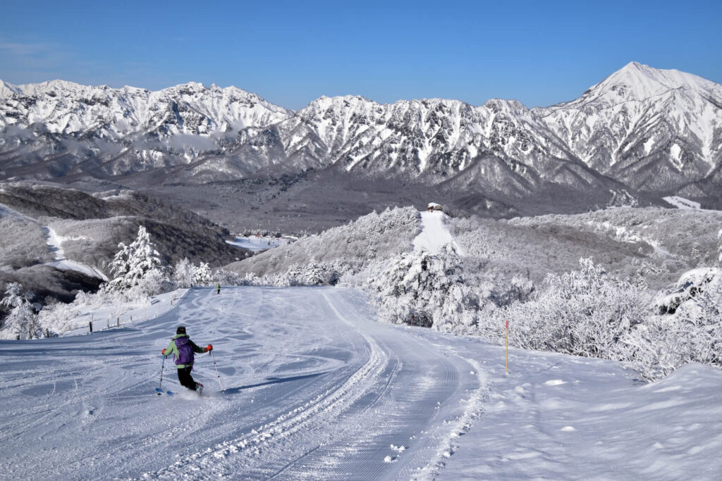 Within easy reach of Echigo-Yuzawa Station, Joetsu Kokusai Ski Resort lays claim to being Japan’s second largest resort. Largely unknown to international visitors, Offering 380 hectares of connected ski fields, the resort offers lots of mellow but picturesque terrain including plenty of tree-lined runs and beautiful vistas of nearby mountains. One of the most beautiful resorts in Japan, Joetsu Kokusai is best-suited to beginner and intermediate skiers and snowboarders with little on-piste and no notable side or backcountry on offer to keep advanced skiers and boarders interested. While undiscovered by international visitors, Joetsu Kokusai is well-known by Japanese and given the relative ease of access from Tokyo, can be very busy on weekends and holidays.