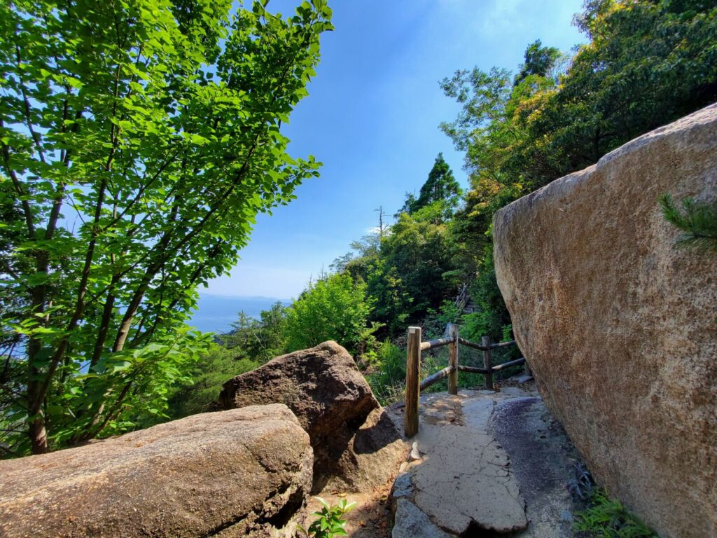 The Daisho-in trail is regarded as the most scenic one of the three, and starts at the left of the main gate of Daisho-in Temple. While this trail has outstanding views, it also involves a great amount of stone steps and takes about 90 to 120 minutes to complete.