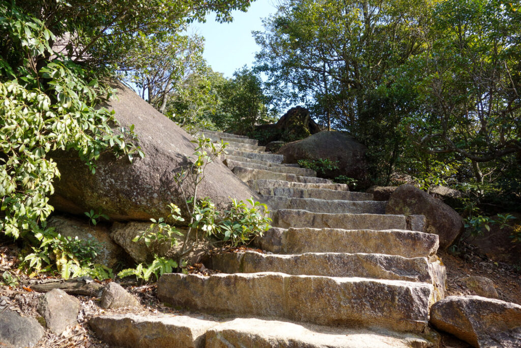 The last hiking trail, Omoto, begins at Omoto Shrine located near the public aquarium. This trail cuts through the dense forests of the mountain and is perhaps the most peaceful and less traveled of the three. This is also the longest one, taking approximately 120 minutes or more to complete.