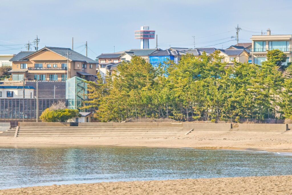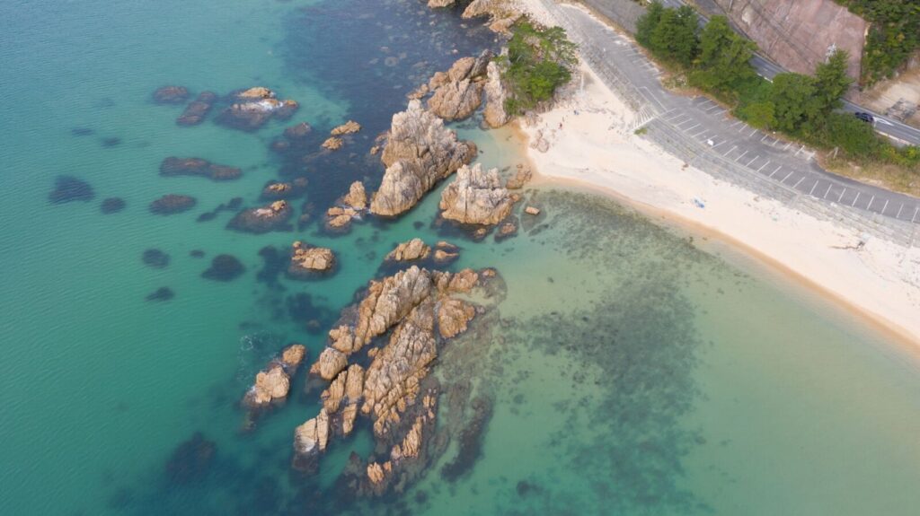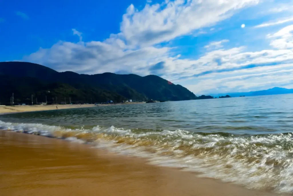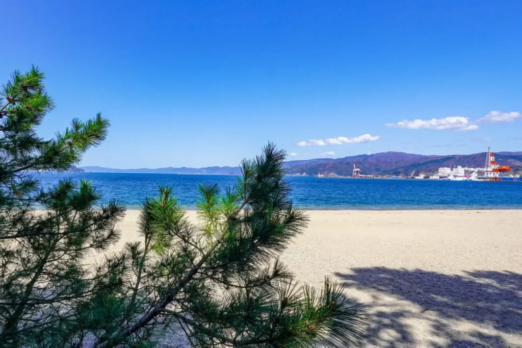 This is the most accessible beach near from Tsuruga Station, taking simply 20 minutes. The sandy beach is perfectly placed for people looking to take a quick dip in the ocean. The short walk from the bus stop is incredibly atmospheric; the path leads through a pine grove listed as one of the three best in Japan. As you walk through, the smell of the ocean starts to hit you, then the blue of the water almost looks too good to be true!