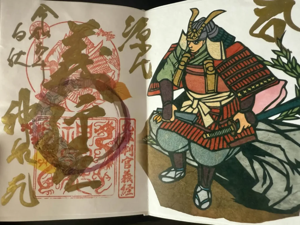 There is really no better place to start than Oyama Shrine. Built in 1873, it is the main shrine for Kanazawa City and enshrines the spirit of the first lord and his wife, Maeda Toshiie and Matsu. There are usually several goshuin available, but we recommend this one that you'll have to glue in yourself. It shows off Oyama Shrine's unique gate, including its lightning rod and stained glass window while also paying homage to Kanazawa's gold leaf industry and the Maeda clan crest on the top left. Interested in taking a tour around Kanazawa? Our Samurai, Matcha, Gardens and Geisha walking tour includes a visit to Oyama Shrine where you can begin your goshuin journey before sipping some matcha while looking out at a beautiful garden. We'll see all of Kanazawa's main attractions along the way, so get your walking shoes ready!