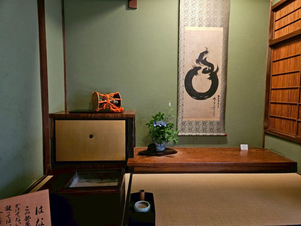 The geisha house has two performing rooms and a private room which show off the extravagance of the geisha culture. Walking through the tea house, you'll also see the kitchen, the area where the geisha got ready converted into a small matcha cafe, and a room showcasing the elegant lacquerware bowls, plates and cups used by real geisha.