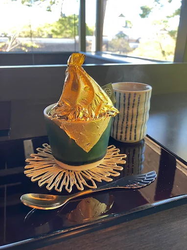 During your time in Kanazawa, you are almost certainly going to visit the Kenrokuen Garden. Just outside the entrance is Kenjotei Tea House, a modern cafe serving some of Kanazawa's best sweets. While you absolutely can get a standard vanilla cone with gold leaf on it, why not lean into the gold leaf fantasy and try a parfait or shaved ice with gold leaf on it? Get a gold leaf coffee, too. Go big or go home, we say!