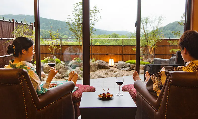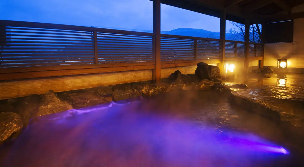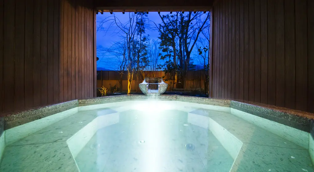 Hyakurakuso IROHA has eight guest rooms, each with their own open-air baths. The soft alkaline water is said to be good for skin, relieving muscle and joint pain and speeding up healing of cuts, burns and bruises.