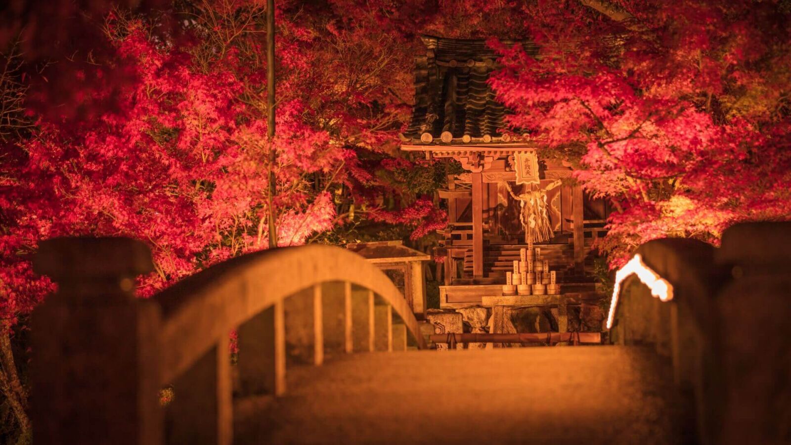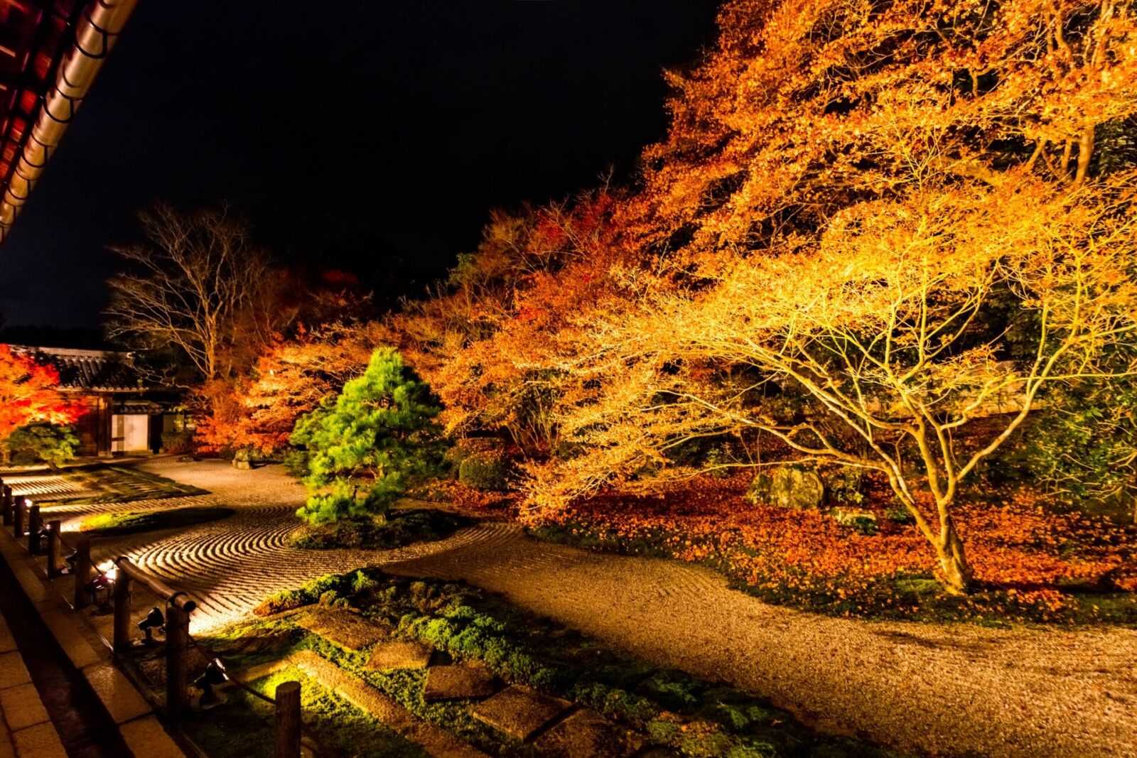 Located at the base of the Higashiyama mountains, Nanzen-ji lies on the eastern outskirts of the city. One of the most important Rinzai sect temples in Japan – an important school of Zen – the temple complex is large and includes multiple historic buildings, stunning gardens and unique brick aqueduct that runs through the grounds. Many trees surrounding the two sub-temples making-up the complex are illuminated at night, an especially beautiful sight.