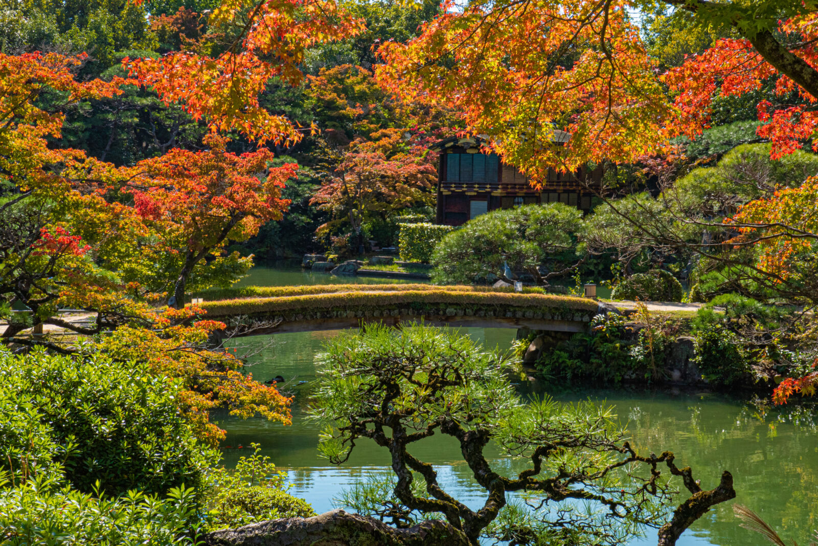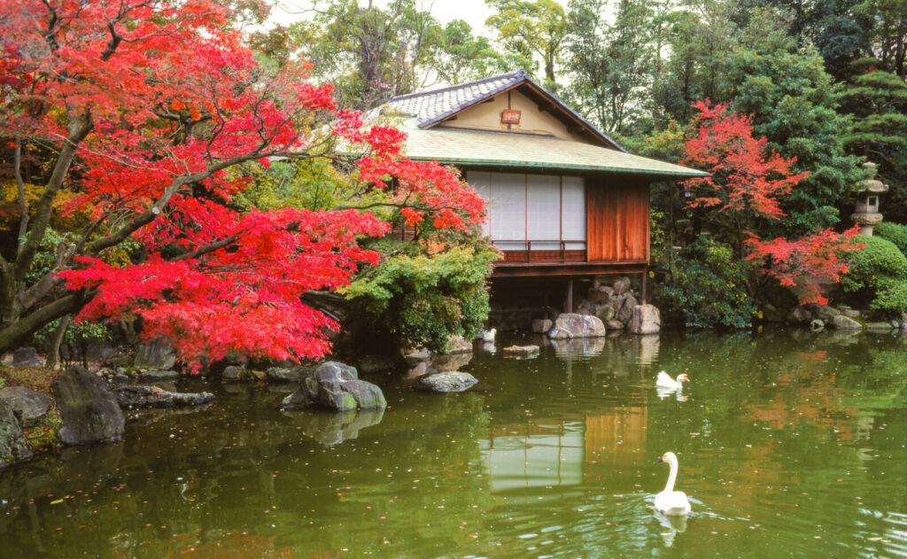 Hidden in the heart of Kobe, Sōraku-en is a traditional Japanese garden known for its quiet elegance. The landscape changes beautifully with the seasons, and in autumn, the reflections of flaming maple trees in the pond create a painterly scene. Historic buildings like the former Hassam House add to the refined charm.