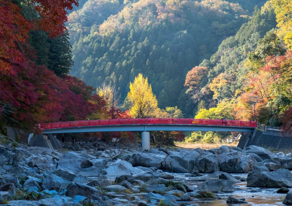 Part of Asuke’s Aichi Forest Park, Korankei gorge is the region’s most iconic autumn destination. Thousands of maple trees turn into vibrant shades of reds and oranges and reflect in the Hozu River below. Enjoy an easy hike through tunnels of leaves and pause at charming shrines and traditional village houses along the way.