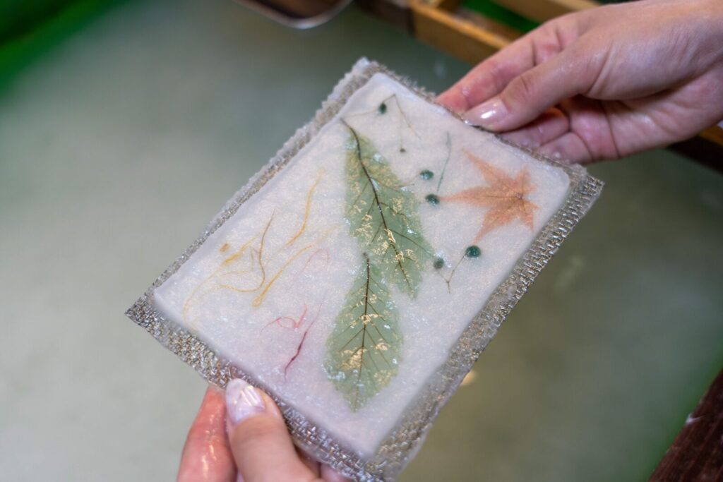 Visitors can take part in hands-on workshops, beginning with scooping mulberry pulp (kozo) into wooden frames, shaking and layering the fibers, and then pressing and drying the sheets. The process emphasizes patience and precision, with every step deeply tied to the natural environment of Omachi- its clear water, fresh air, and seasonal rhythms. Participants can bring home their own washi creation, whether a sheet of paper, bookmark, or card, as a lasting reminder of the experience.