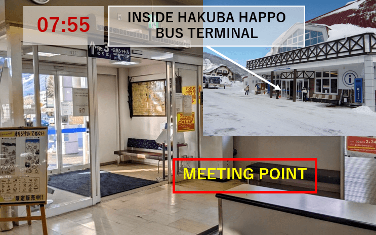 Please wait inside the bus terminal and stay warm. Several tours operate from the bus terminal be sure to look for the guide wearing a SNOW MONKEY RESORTS tour tag and confirm that you're joining the correct tour. Please ensure you are at the terminal before the meeting time. The tour cannot wait and will need to depart on-time.
