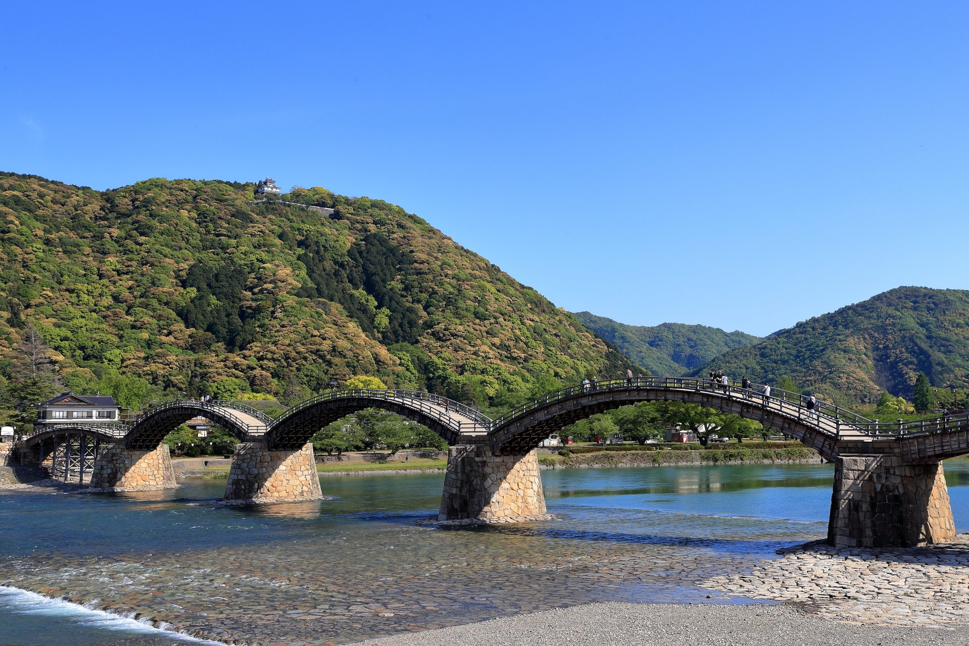 Admire and cross the Kintaikyo Bridge, one of the most famous bridges in the world