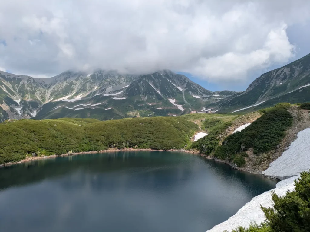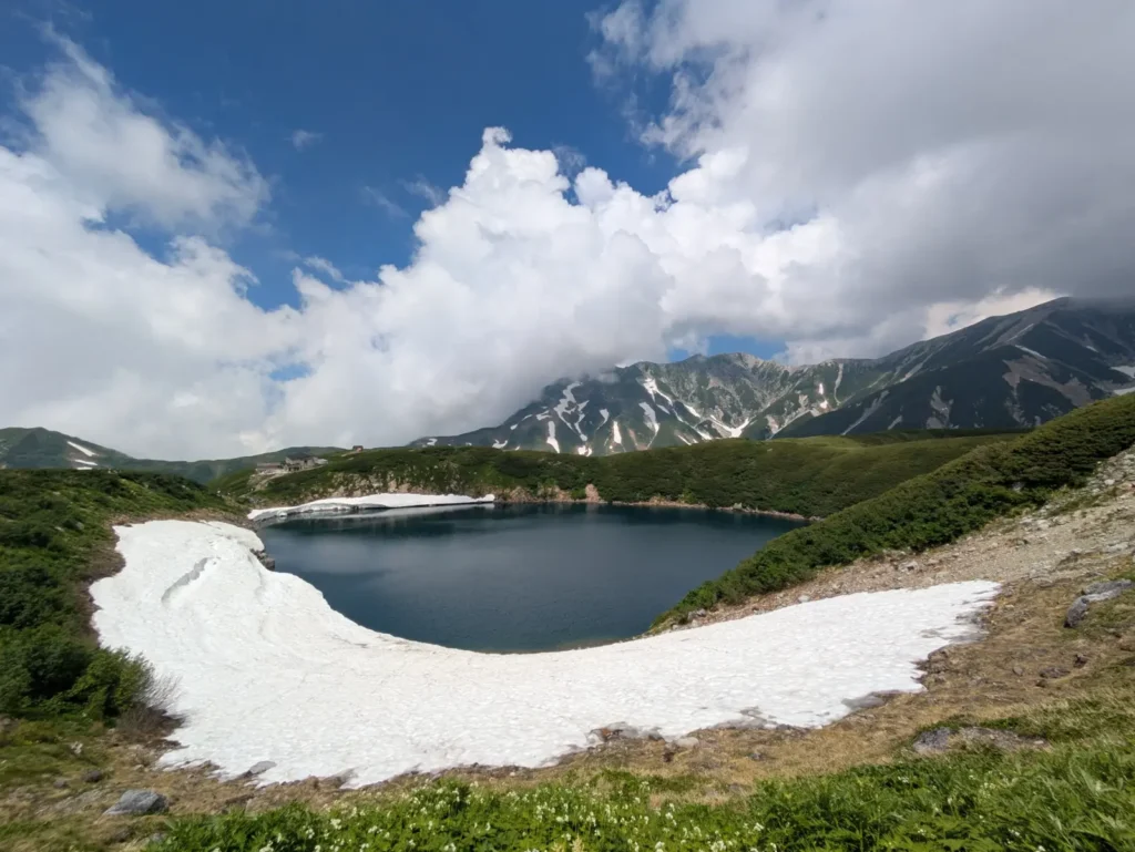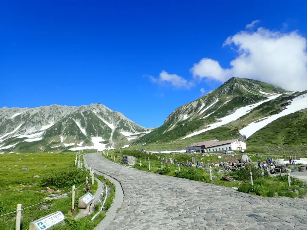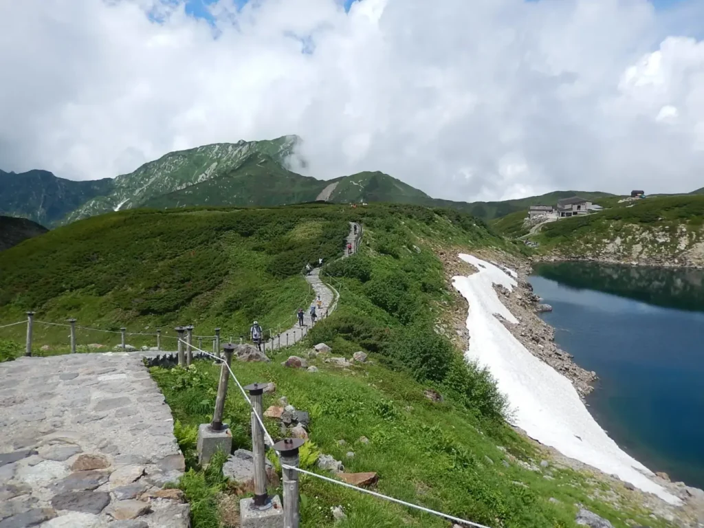With your back to Murodo Station, this volcanic pond reflects Mt. Tsurugi in the distance. Even in late July, there are pockets of deep snow which call back to just how heavily the snow falls in the mountain range. There are some years when it doesn't even all melt before winter comes again! This pond is part of what is known as Hell Valley, as the warm water is unsafe to consume. Pilgrims would climb through the Hell Valley, symbolically ascending from the Buddhist version of hell to the Pure Land of the afterlife. While you are unlikely to see any pilgrim monks today, you should bring your camera nevertheless to take advantage of the views around the mountainside.