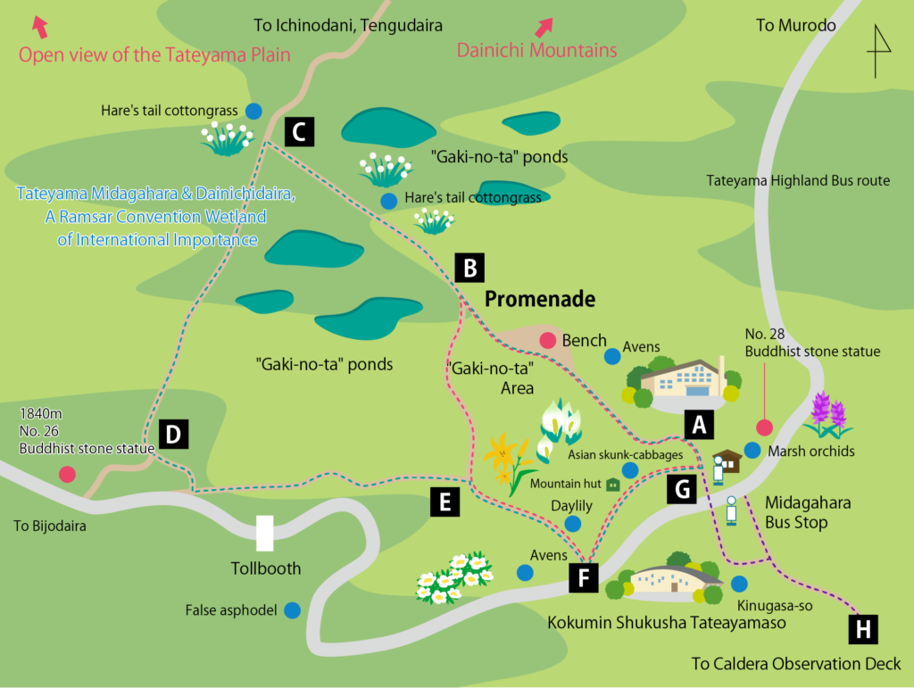 Arrive at the Midagahara Wetlands. Bring your bento with you, as we will stop and eat lunch while looking out over the plateau. There are several routes through here, so you can choose which you wish to tackle.