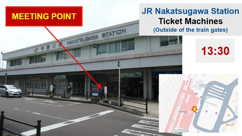 At Nakatsugawa Station, the meetup point will be by the ticket machines located just outside the train gates. Your guide will be waiting there, holding a SNOW MONKEY RESORTS tour sign for easy recognition.