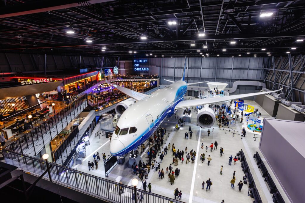 FLIGHT OF DREAMS是 1 号航站楼内的独家景点,以第一架波音 787 原型机为中心,带来以航空为主题的体验。该综合体包含两个区域:FLIGHT PARK,一个适合儿童和航空爱好者的互动展览空间;SEATTLE TERRACE,一个受波音公司家乡启发的餐饮和购物区。