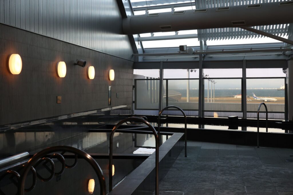 该水疗中心位于1号航站楼四楼,设有可欣赏跑道和伊势湾景色的露天浴池,游客可以一边浸泡在天然温泉水中,一边观看飞机起飞。该设施还设有桑拿和按摩区。