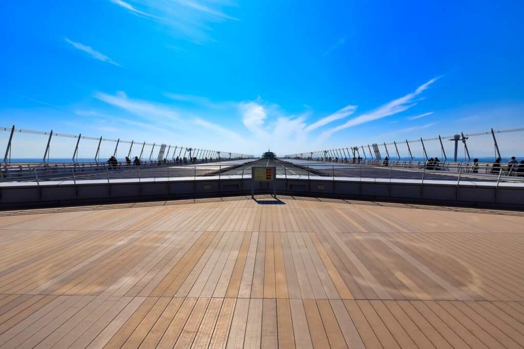 观景台向跑道方向延伸300米,是日本最长、距离现役机场跑道最近的观景台之一。游客可以在几米之外观看飞机起飞和降落。观景台上还设有标有各国际航空公司尾标的标识。晴朗的日子里,您可以眺望伊势湾对岸的志摩半岛,并观看货船在名古屋港航行。