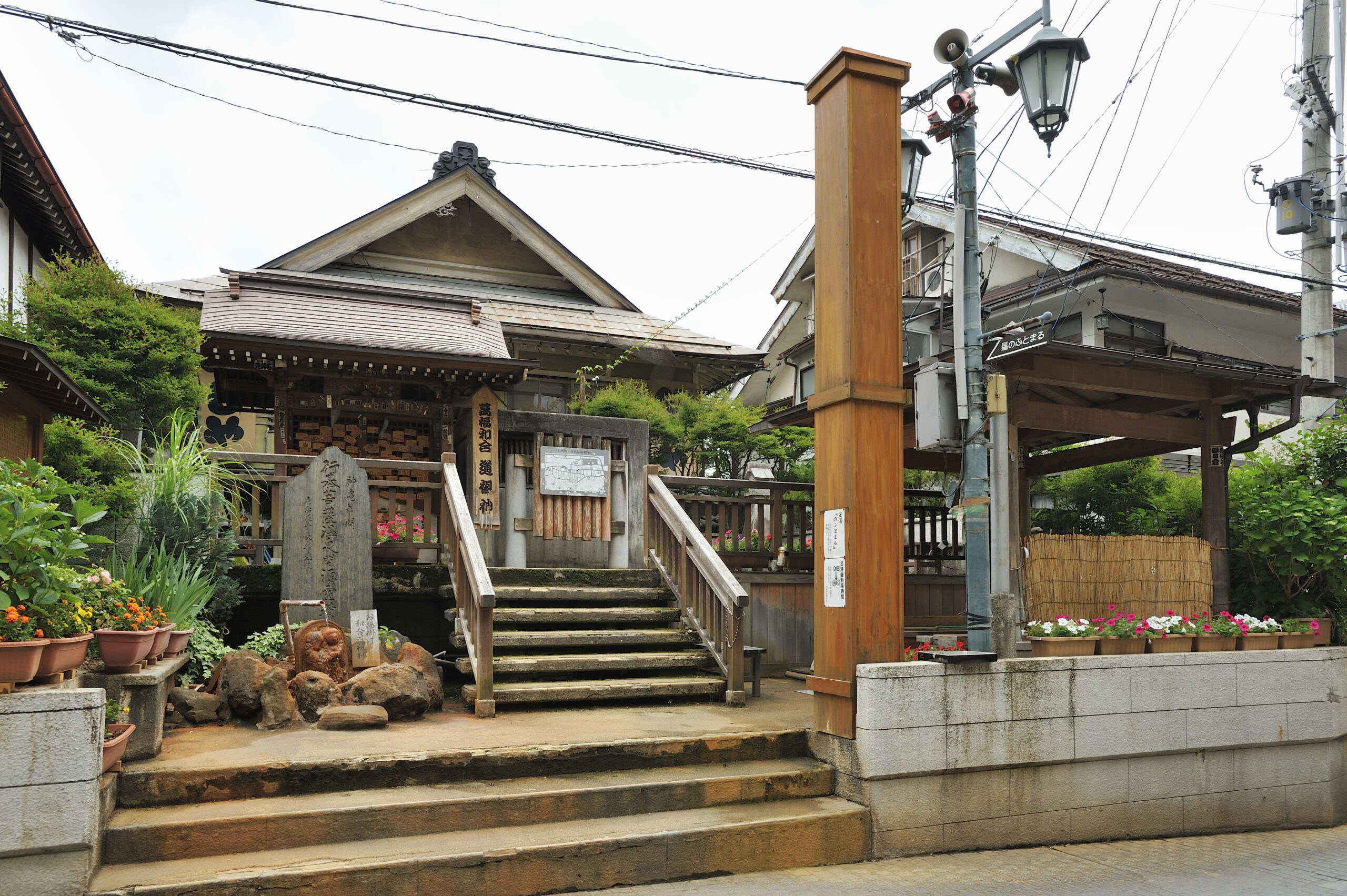 当然,它也可以纯粹用来放松身心,其传统的木质内部结构和自然浑浊的泉水会将进入其中的人带入另一个世界。门票可在涉温泉旅游咨询处购买,从浴场步行约 2 分钟即可到达。男浴池和女浴池位于楼梯下,从两侧进入,上方是露天足汤(Ashiyu)。任何人都可以免费使用。这是镇上的两个浴场之一,无论在什么时候都同样令人愉悦。