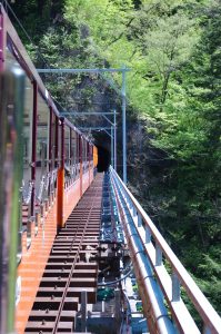 黑部峡谷铁道经常被誉为日本最美丽的峡谷和列车之旅之一,它是一条单轨窄轨列车线路,沿着黑薙川,沿着美丽的峡谷行驶。它最初是作为附近黑部大坝建设的一部分而建造的,如今,这条铁路是一条从宇奈月站到欅平站的热门观光列车。该线路在这些车站之间运行,全长 20 公里,跨越 20 多座桥梁并穿过 40 条隧道,并在三个车站停靠:黒薙和欅平。