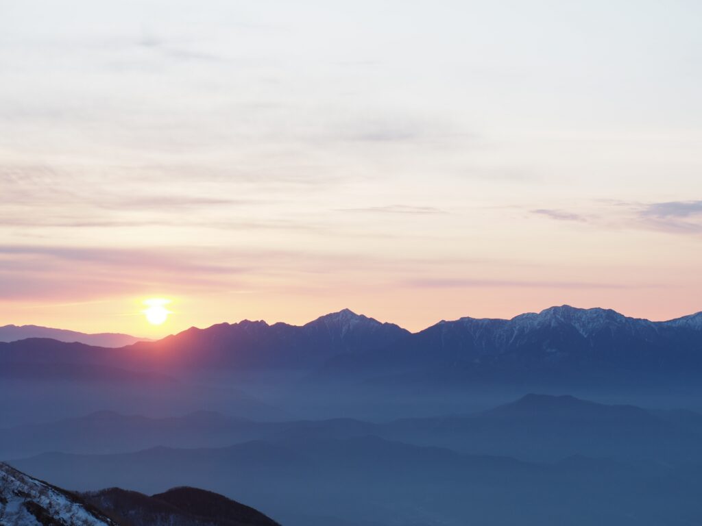 晴朗的日子里,能见度远超中央阿尔卑斯山脉。可以看到南阿尔卑斯山脉,甚至远处的富士山也能看到。