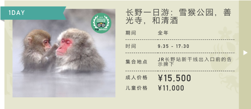 对于那些想要更加个性化体验的人,我们还提供雪猴公园和善光寺等附近景点的私人游览。欲了解更多信息,请点击上面的链接或向我们发送询问,描述您的理想行程。