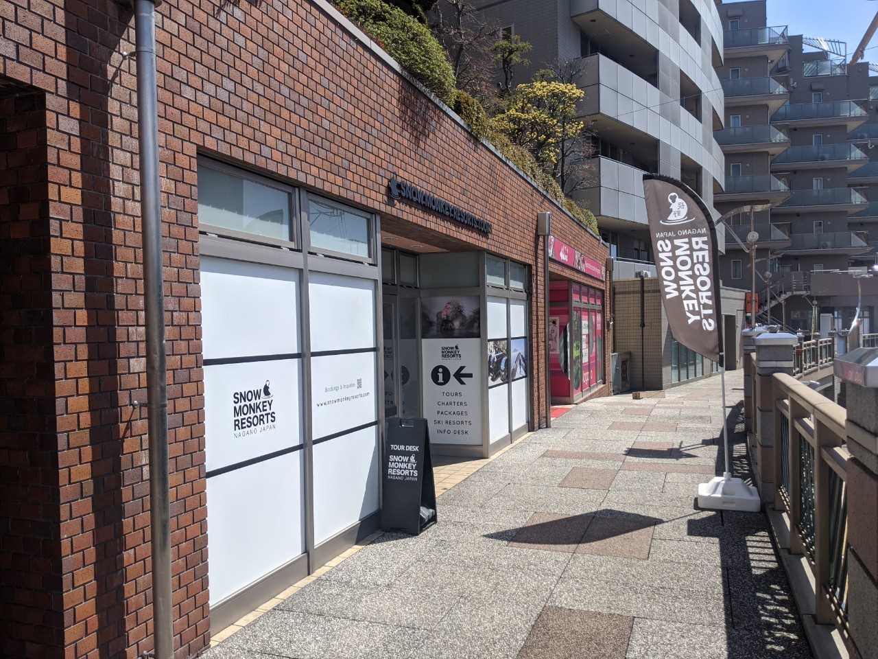 SNOW MONKEY RESORTS问讯处距 JR 长野站仅 2 分钟步行路程,是您在必要时前来咨询的好地方。从JR长野站东口出站,沿着高架人行道直走即可。咨询台位于大楼的二楼,因此您无需下到街道层。您会在入口处看到一面印有 Snow Monkey Resorts 名称的旗帜,指示在哪里转弯。 尽管位于以北近 250 公里处,但从东京乘坐新干线(子弹头列车)可在 1.5 小时内轻松抵达长野站。 -西方。对于来自其他地区的客人,请参阅我们的“如何前往长野市”页面。到达长野站后,您所需要做的就是按照上述说明进行操作。