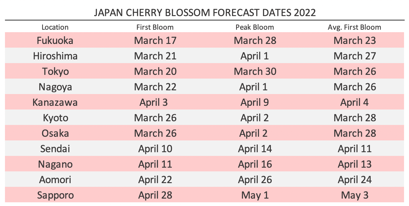 每年,日本气象局 (JMC) 都会发布樱花盛开时间的预测。随着春天的到来,您可以期待预测会得到更准确的日期。