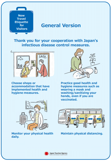 为了促进顺利入境,前往日本的旅客必须满足某些健康和证件要求。目前,尽管卫生部可能在入境点实施选择性健康筛查措施,但进入日本的旅客并未强制要求提供 COVID-19 检测和疫苗接种文件。此外,日本移民当局还要求提供继续或回程旅行的证明以及足够的经济能力来支持停留。访客还必须提供住宿安排的明确证据,通常以酒店预订或房东确认的形式。
